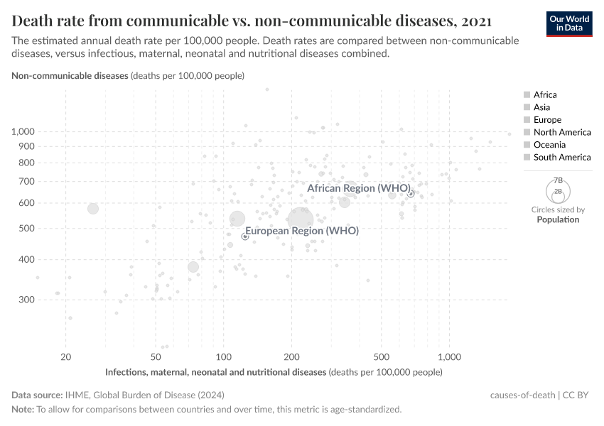 On this page, you will find global data and research on leading causes of death and how they can be prevented. This includes the number of people dying from each cause, their death rates, how they differ between age groups, and their trends over time.