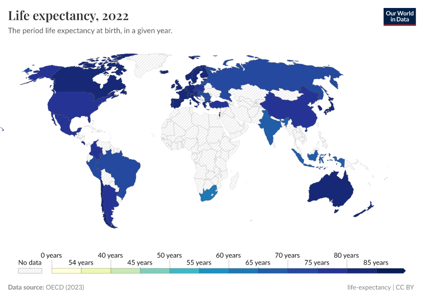 “Data Page: Life expectancy at birth”, part of the following publication: Saloni Dattani, Lucas Rodés-Guirao, Hannah Ritchie, Esteban Ortiz-Ospina and Max Roser (2023) - “Life Expectancy”. Data adapted from OECD. Retrieved from https://data-migration-flow-mdims.owid.pages.dev/grapher/life-expectancy-at-birth-oecd [online resource]How to cite this data
