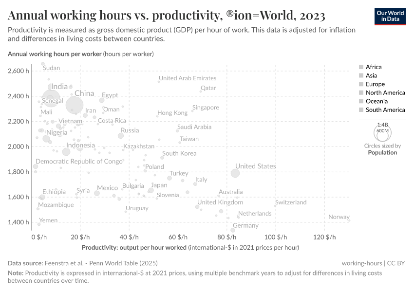 People are able to work less when they work in more productive economies